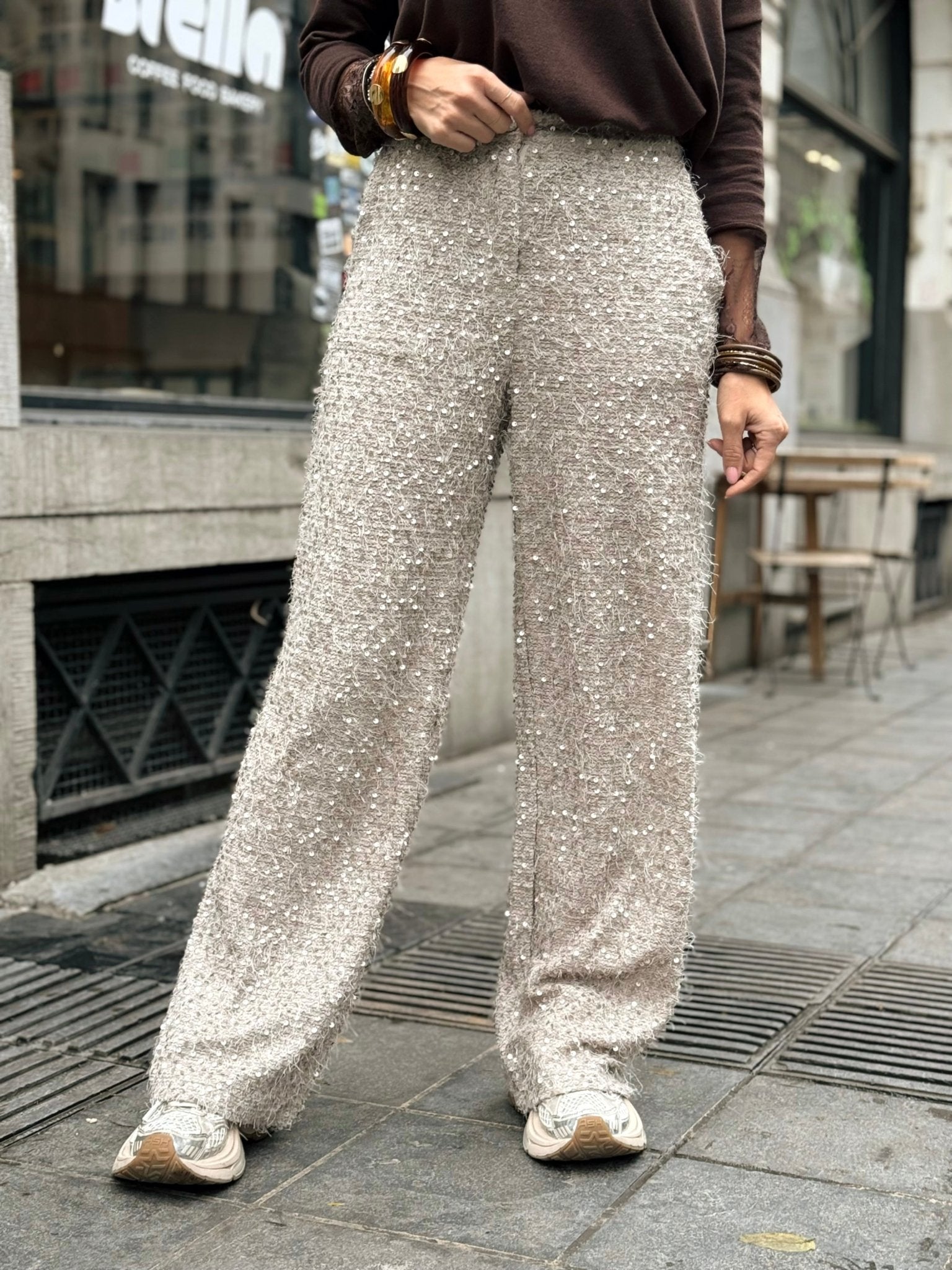 Sequins délicatement cousus sur l’ensemble du pantalon