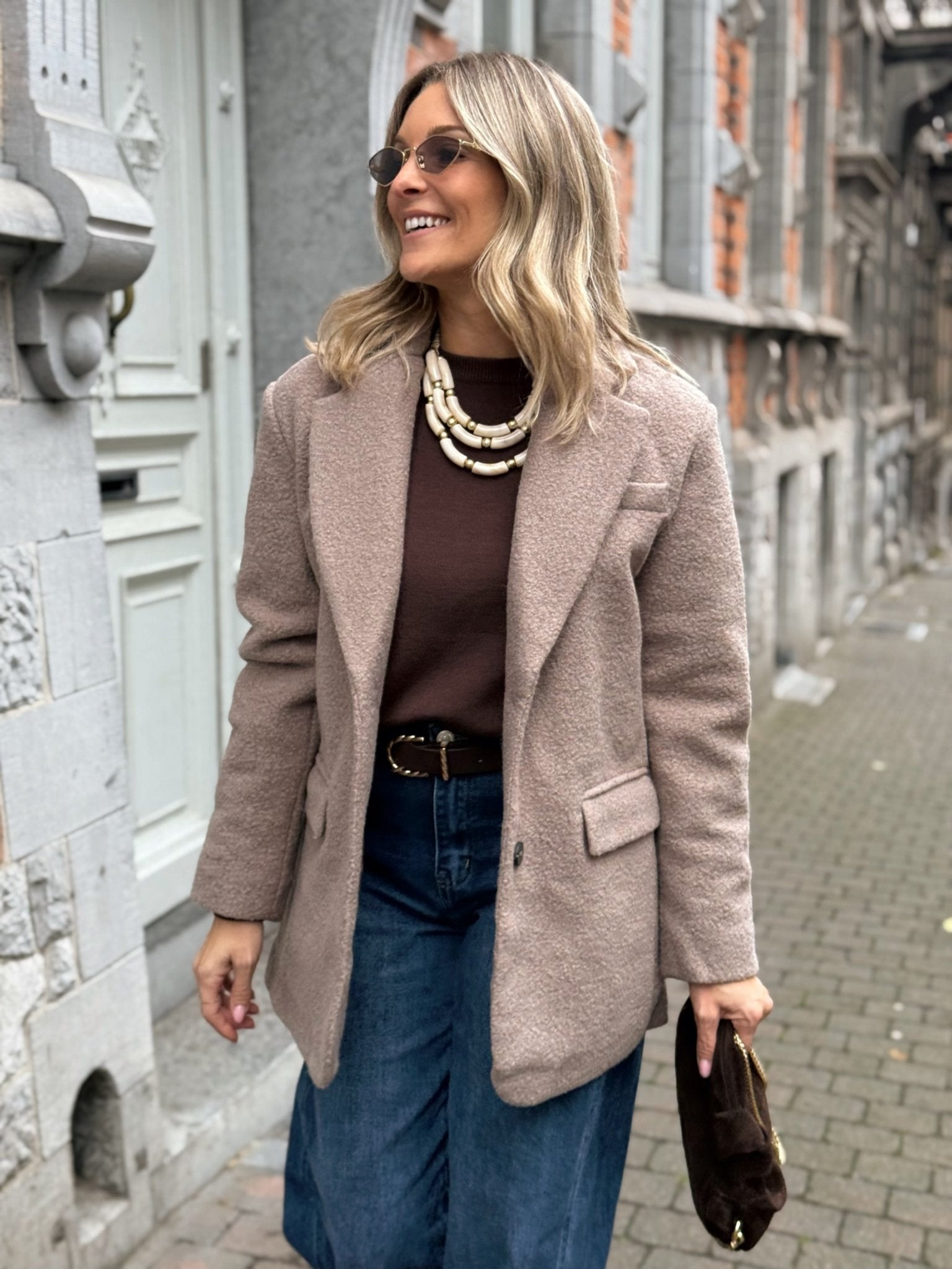 Une veste chic et facile à porter, idéale pour celles qui recherchent un manteau à la fois moderne, confortable et indémodable.