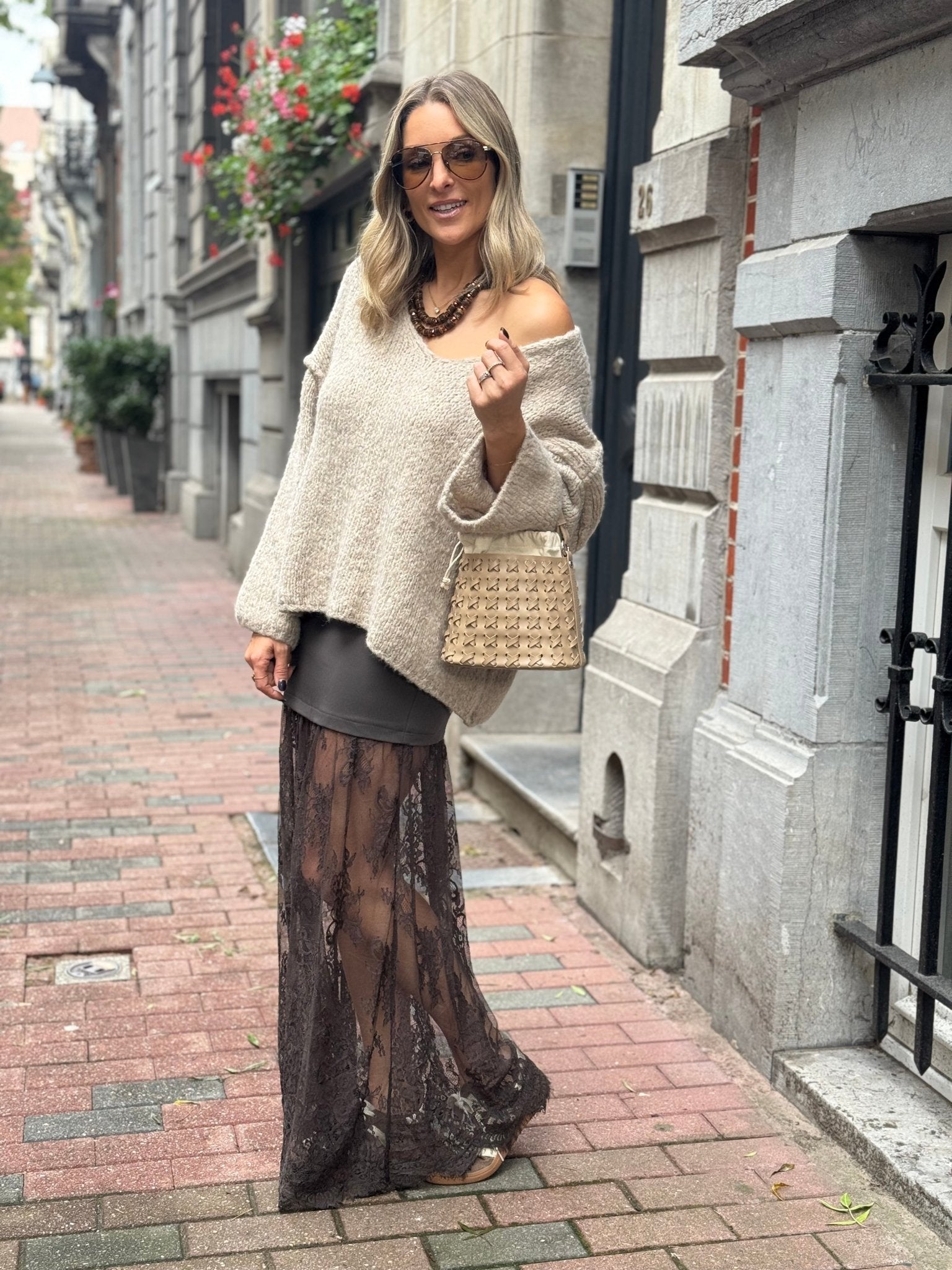 La jupe Mia est une pièce élégante et raffinée, parfaite pour sublimer une tenue habillée ou ajouter une touche romantique à un look plus casual. Son haut opaque et sa partie en dentelle transparente créent un joli jeu de matières qui allonge la silhouette tout en apportant de la légèreté.
