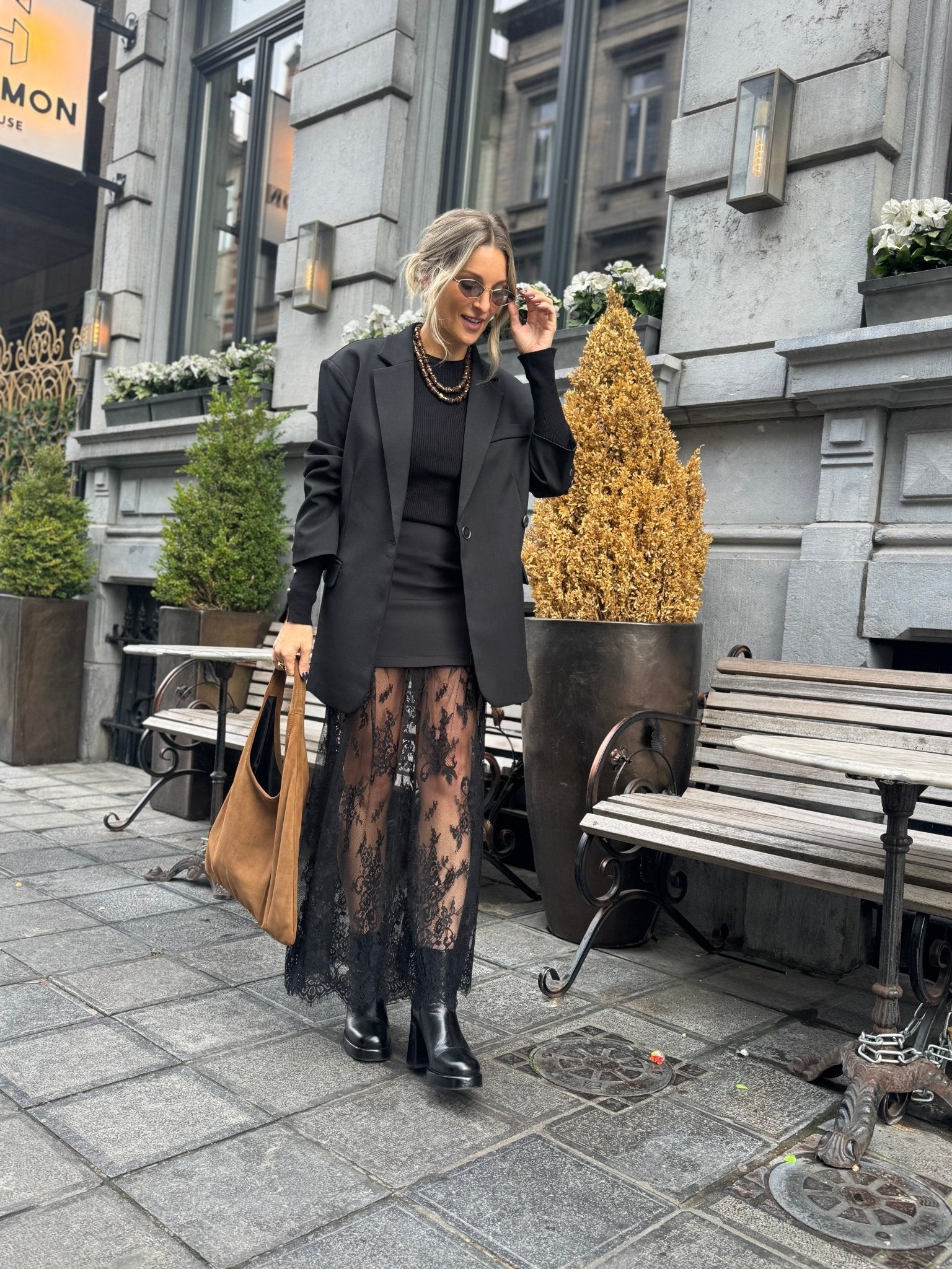 La jupe Mia est une pièce élégante et raffinée, parfaite pour sublimer une tenue habillée ou ajouter une touche romantique à un look plus casual. Son haut opaque et sa partie en dentelle transparente créent un joli jeu de matières qui allonge la silhouette tout en apportant de la légèreté.